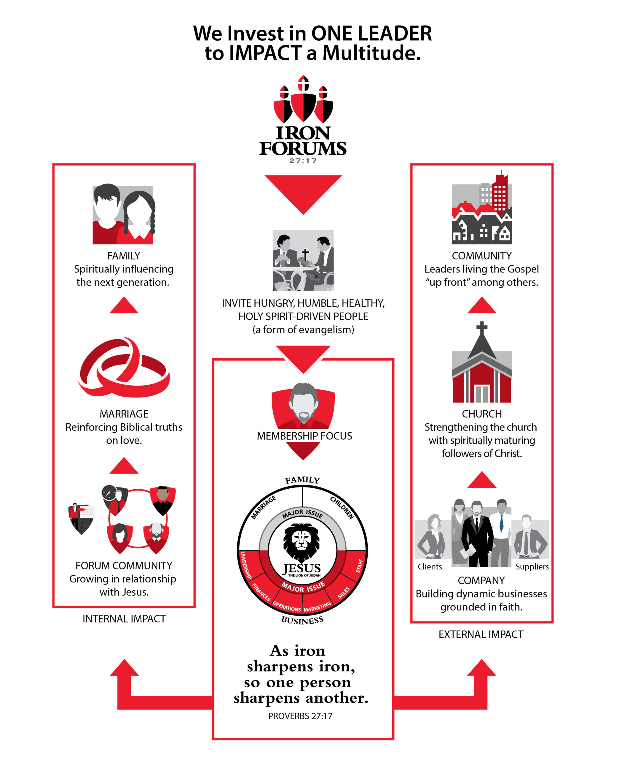 Iron Forums Members are the business owners and influencers who lead a team, and also have felt a calling to run their business on Christian principles. The organization is driven by relationships peer-to-peer and Christ-to-business owner. It allows members to discuss their relationships with Christ, their spouses, their children, their employees, vendors and clients; in an honest and confidential way with others who have similar experiences. Members take away ideas to improve through the Iron Forums Culture of TRUTH, TRANSPARENCY, TRACTION and TRANSFORMATION.