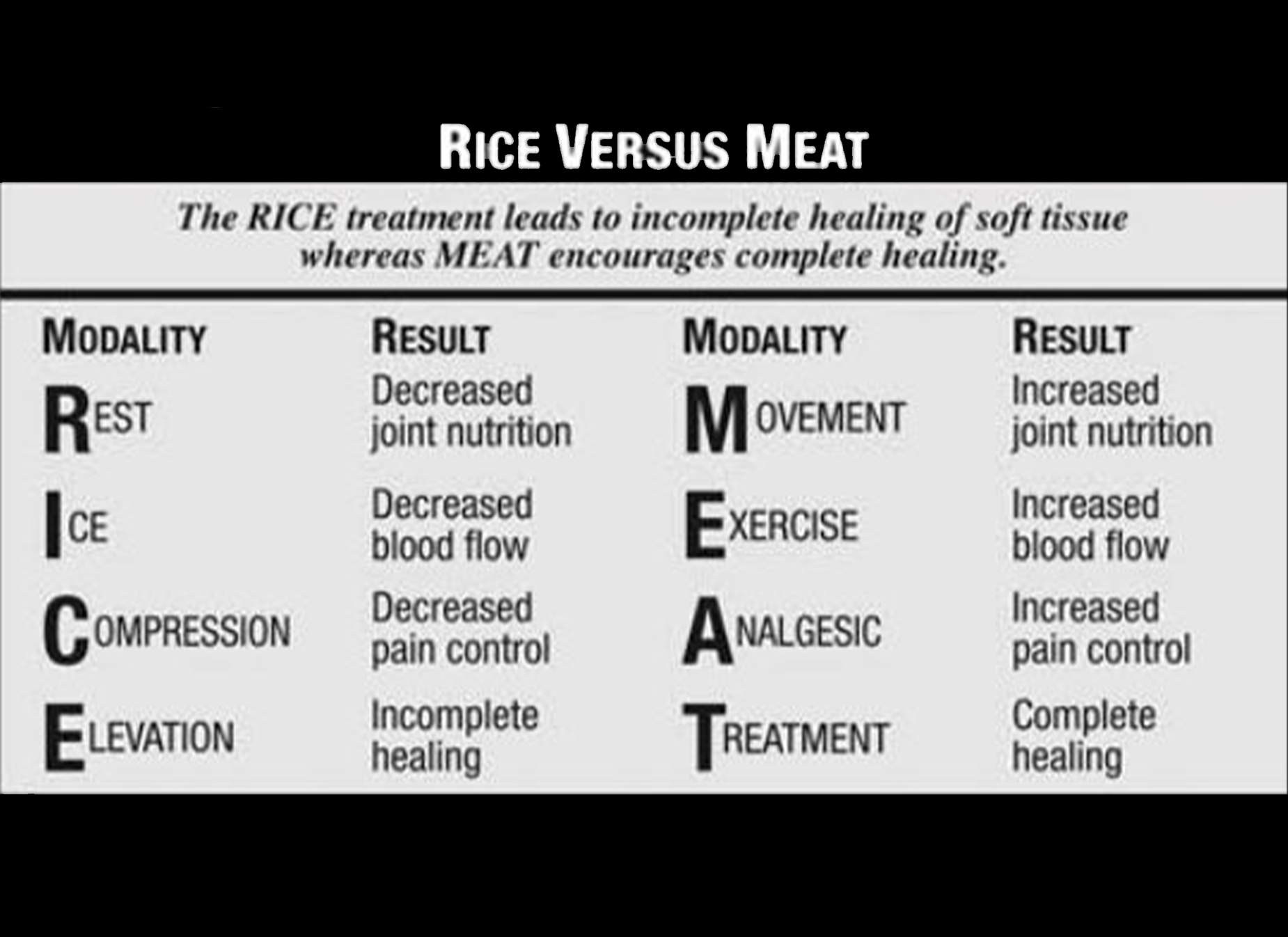 Many providers advised the R.I.C.E. protocol (Rest, Ice, Compression, Elevation). Recently, that has been replaced with M.E.A.T.